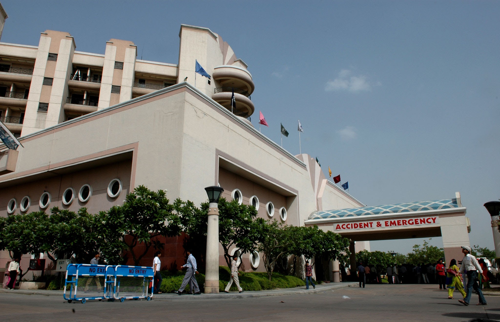 INDIA – JUNE 06: Exterior view of Indraprastha Apollo hospital buildng in New Delhi, India. (Photo by Ravi S Sahani/The India Today Group/Getty Images)